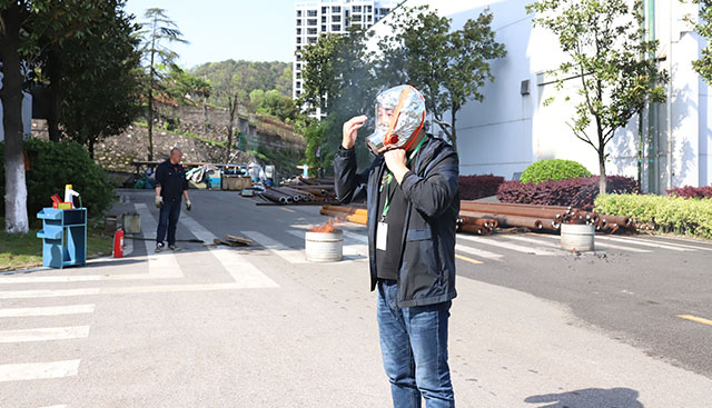 公司安環辦負責人實地示范指導大家手持干粉滅火器對準火源根部由遠及近進行掃射撲滅火源的實際操作,并對防毒面具的使用進行了現場演示。還現場組織全體員工觀看了20209.29特大火災事故視頻,警示大家對小火源的重視及迅速及時的采用正確滅火方法消滅一切火源。