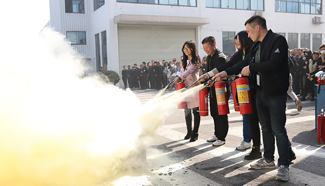 最后,安環辦負責人組織了員工現場實操使用滅火器,在滅火實戰演練中,組成六組隊員以比賽的形式進行干粉滅火器滅火,整場演練緊張有序,達到預期目的。