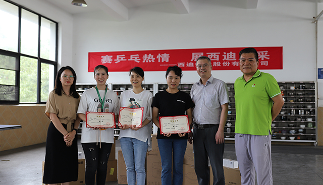 隨后,在比賽現場進行了頒獎儀式。公司董事長、常務副總以及乒乓球賽組委會主席分別為獲獎選手頒發榮譽證書及獎品。此次“賽乒乓熱情,展西迪風采”第二屆西迪杯乒乓球賽圓滿結束。展現了西迪職工們積極向上,健康生活的風采,進一步融洽工作氛圍,讓我們期待下一次比賽更加精彩!