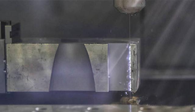 噴吸鉆外形的切削刃交錯分布在精密零件加工鉆頭的兩側,頸部有噴射切削液的小孔,前端有兩個喇叭形孔,切屑在由小孔噴射出的高壓切削液的壓力作用下,從這兩個喇叭形孔沖入并吸出空心刀桿向外排出。
