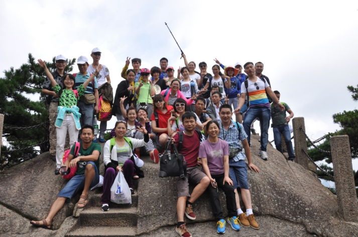 這天的天氣是再適合爬山不過了,大家早早準備好了大背包小背包的食物和水,個個壯志雄心、意氣風發(fā)、精神抖擻,朝著黃山之巔奮力前進。攀登開始了,因為開始的激情一下就走到了半山腰,但大約1小時后便開始有同事邁不動腳步了,肩上背的背包原來這么重,都不知道自己帶了些什么,恨不得現(xiàn)在一口氣把背包里所有食物都吃進肚子里來減輕肩上重任。體力好的同事主動幫助身體瘦弱的女同事提拿包裹行李,互相鼓勵,互相攙扶,靠團結(jié)的力量一步步前行。
